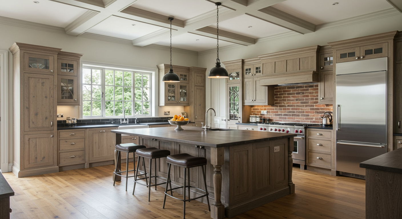 Duchateau wood floors throughout, custom millwork, including all new Redwood siding, custom cabinets with inset doors and soft-close drawers, solid wood interior doors, and wainscotting. Gorgeous kitchen features a large island, Sub-Zero refrigerator, brick backsplash, pot filler on the stove, and Electrolux ovens.